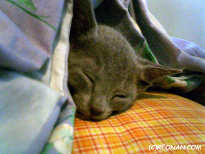 昨夜、我が家に到着して2日目の日曜日。うとうとお昼寝。けっこう神経太い仔なのカモ。じつはまだ、名前は決まっていないれおにゃん。