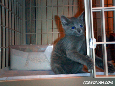 れおにゃんのゲージは豪華3階建て。最初はまだ自力で2階に登れませんでした。(踏み台必要。)