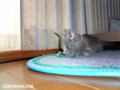 テニスボール狙い。こんなちいっちゃいのに、ちゃんと攻撃態勢なんだね〜。
