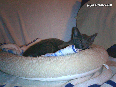 れおにゃんの専用ベッドでおねむ。最初はなかなか使ってくれなかったけど、慣れてくれたみたいで良かった!