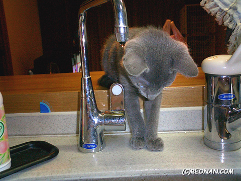 反省ポーズにも見えますが、水滴が気になっちゃってるのです。
