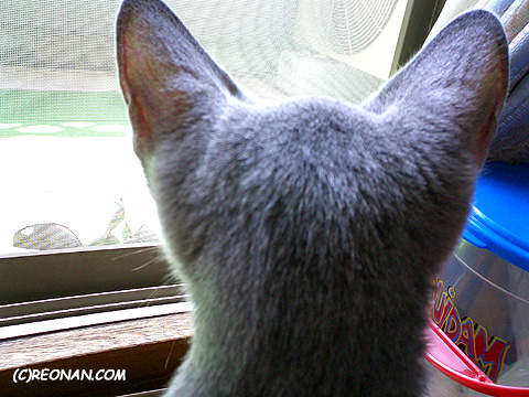 れおにゃんの後姿。かわいいあたま〜。なでなでしたくなっちゃいます。