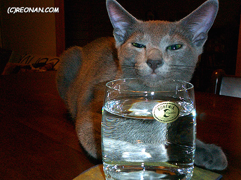 お水入れのコップにあご乗せ。カワイイなあ。もお。